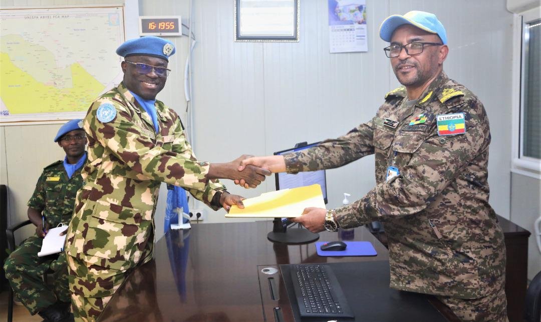 The Force Commander/Acting Head of Mission for the United Nations Interim Security Force for Abyei (UNISFA), Major General Benjamin Olufemi Sawyerr, has officially taken over from Ethiopia’s Major General Kefyalew Amde Tessema who has served the mission for close to two years.