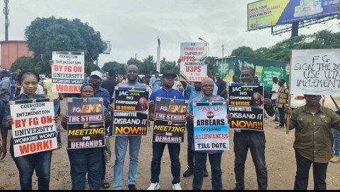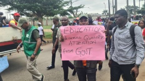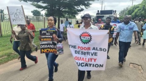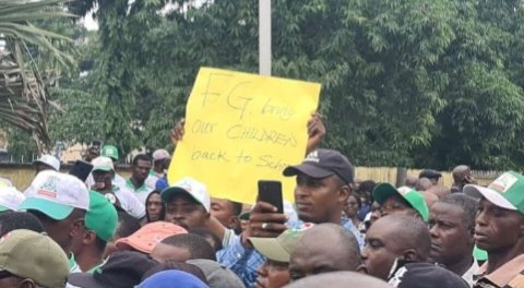 The nationwide protest organised by the Nigeria Labour Congress, NLC, is in solidarity with ASUU over the ongoing industrial action by the varsity staff union that clocked five months on July 14, 2022.