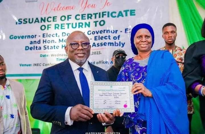 Oborevwori Receives Certificate of Return, says Deltans’ Labour Won’t Be in Vain