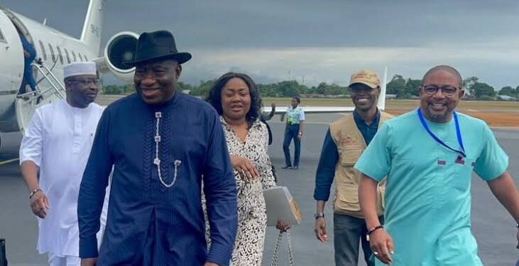The Head of the West African Elders Forum (WAEF) 2023 Election Mission to Sierra Leone, former President Goodluck Jonathan, on Wednesday arrived Freetown ahead of the Saturday’s general election in the country.