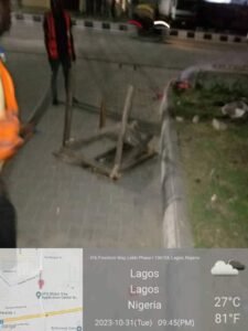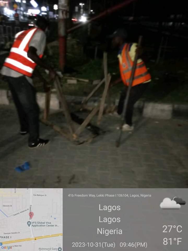 Sharing photos from the demolition, Adeshina wrote, “Environmental monitoring/enforcement team from MOE&WR on night duty Tuesday at Freedom Way in Lekki phase one to demolish illegal structures by street traders on the roadside.”