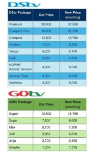 Multichoice Nigeria, owners of Nigerian pay television, DStv and GOtv, have announced a price increase for its packages.