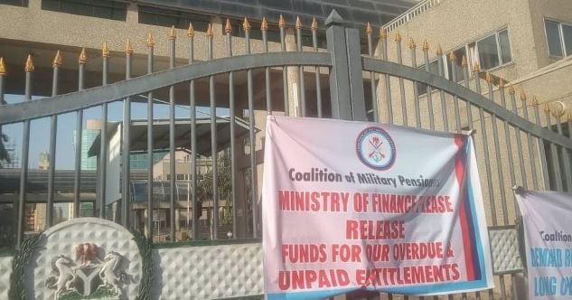 The Federal Ministry of Finance in Abuja has been shut down by members of the Nigerian Armed Forces retirees under the umbrella of the Coalition of Military Pensioners.