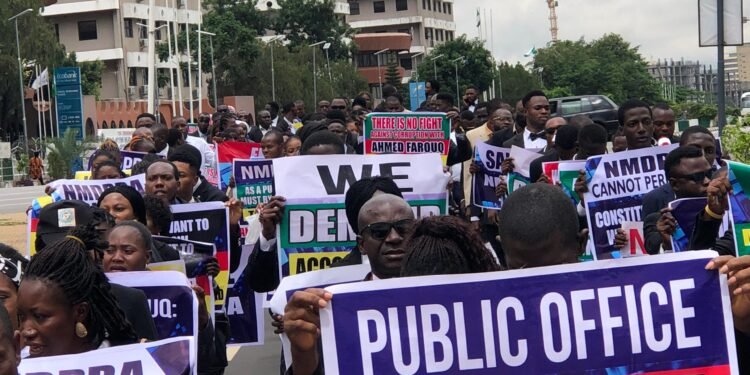 Protests by public interest lawyers at the National Assembly against Farouk Ahmed, the Managing Director of the Nigerian Midstream and Downstream Petroleum Regulatory Authority (NMDPRA) continued on Wednesday.
