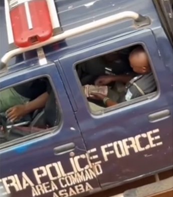 In the trending video, the officers inside a patrol van which had an inscription of Area command Asaba, on it.