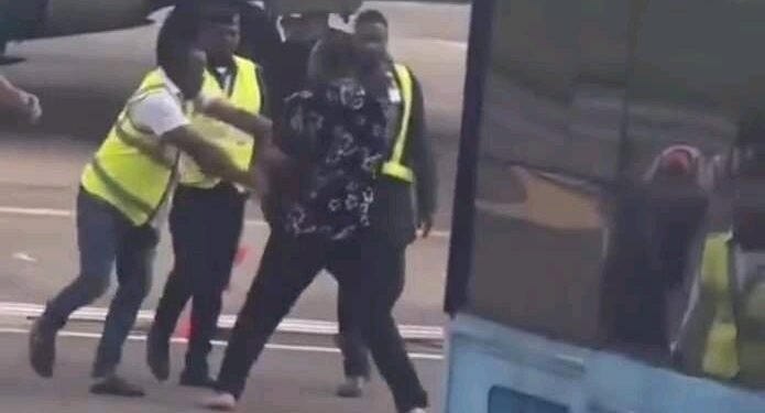 A video showing the moment an Enugu Air passenger was dragged away from the plane has surfaced online.