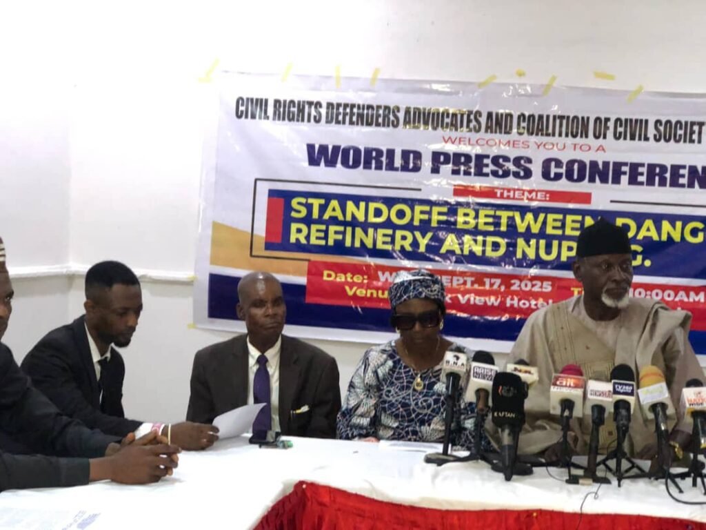 A coalition of civil society organizations has rallied behind Dangote Petroleum Refinery, denouncing the Nigeria Union of Petroleum and Natural Gas Workers (NUPENG) for what they described as “economic terrorism” and coercive unionization tactics.