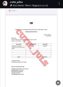 Cutie Juls reports that Kizz Daniel was booked for an event in Germany in 2022 and charged $100,000, but was paid half of his fee .