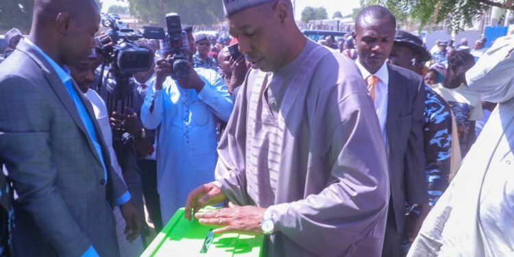 Governor Babagana Zulum has voted in today’s council election which took place in the 27 council areas of Borno State.