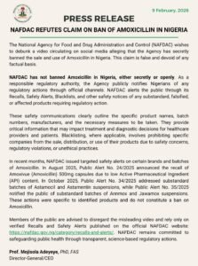 The National Agency for Food and Drug Administration and Control (NAFDAC) has debunked a viral video falsely claiming that the antibiotic amoxicillin has been secretly banned in Nigeria.