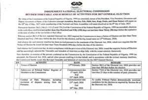 The Independent National Electoral Commission (INEC) has released a revised timetable for the 2027 General Election, bringing forward the presidential and National Assembly polls.