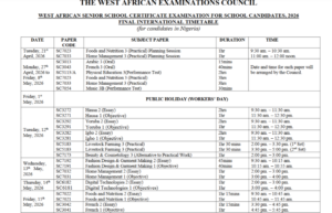 The West African Examinations Council (WAEC) has released the timetable for the 2026 West African Senior School Certificate Examination (WASSCE) for school candidates.