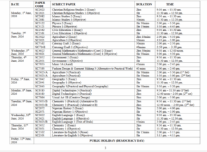 According to the timetable, the examination will commence Tuesday, April 21, 2026, and end on Friday, June 19, 2026.