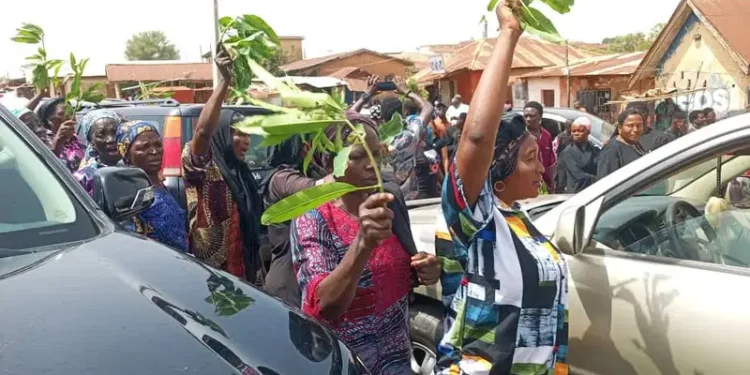 Tension heightened in Angwan Rukuba community in Jos North Local Government Area of Plateau State on Tuesday as angry women took to the streets carrying leaves and chanting songs to stop the planned mass burial of some victims of the Palm Sunday deadly attack by gunmen.